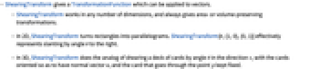 - ShearingTransform works in any number of dimensions, and always gives area- or volume-preserving transformations.