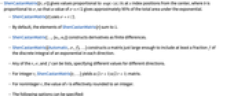 - ShenCastanMatrix[{Automatic,σ,f},…] constructs a matrix just large enough to include at least a fraction f of the discrete integral of an exponential in each direction.