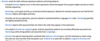 - If several Shortest objects occur in the same expression, those that appear first are given higher priority to match shortest sequences.