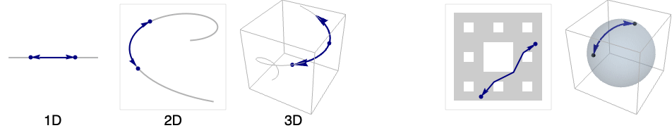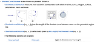 - ShortestCurveDistance[reg,s,t] gives the length of the shortest curve between s and t on the geometric region reg.