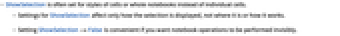- Settings for ShowSelection affect only how the selection is displayed, not where it is or how it works.