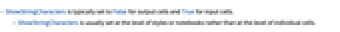 - ShowStringCharacters is typically set to False for output cells and True for input cells.