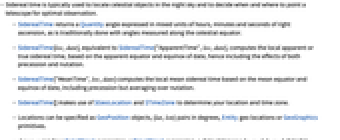 - SiderealTime[…,func] is used to specify the format of output when extended locations are specified.