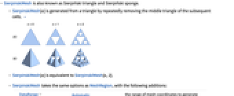 - SierpinskiMesh[n] is equivalent to SierpinskiMesh[n,2].