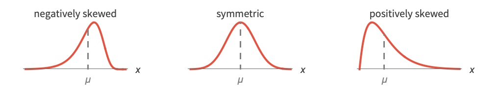 indicates a distribution with a long right tail. A negative skewness indicates a distribution with a long left tail. -