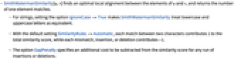 - SmithWatermanSimilarity[u,v] finds an optimal local alignment between the elements of u and v, and returns the number of one-element matches.