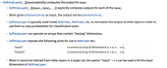 - SoftmaxLayer[…][input] explicitly computes the output for input.