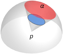 - SolidAngle[p,reg] is the measure of the intersection of the unit sphere centered at p and half‐lines from p through points of the region reg.
