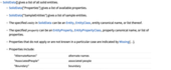 - SolidData["SampleEntities"] gives a list of sample entities.