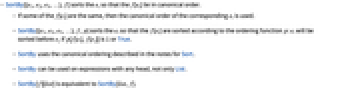 - SortBy[{e1,e2,e3,…},f] sorts the ei so that the f[ei] lie in canonical order.