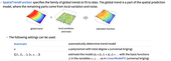 - SpatialTrendFunction specifies the family of global trends to fit to data. The global trend is a part of the spatial prediction model, where the remaining parts come from local variation and noise.