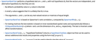 - SpearmanRankTest performs a hypothesis test on v1 and v2 with null hypothesis