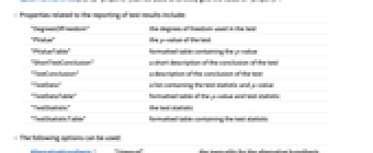 -value and test statistic"TestStatistic" the test statistic "TestStatisticTable" formatted table containing the test statistic - The following options can be used: