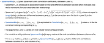 - SpearmanRho[v1,v2] gives Spearman's rank correlation coefficient