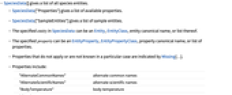 - SpeciesData["SampleEntities"] gives a list of sample entities.