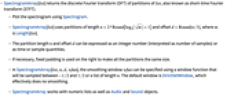 or a list of length n. The default window is DirichletWindow, which effectively does no smoothing. - SpectrogramArray works with numeric lists as well as Audio and Sound objects.