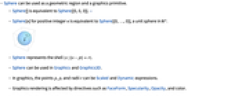 - Sphere[n] for positive integer n is equivalent to Sphere[{0,…,0}], a unit sphere in