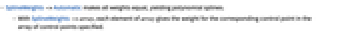 - SplineWeights->Automatic makes all weights equal, yielding polynomial splines.