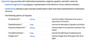 - SpokenString[expr] works with mathematical expressions, programs, graphics, and other constructs.