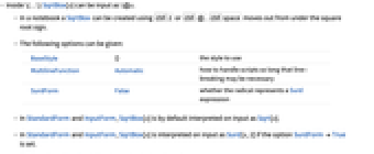 BaseStyle {} the style to use MultilineFunction Automatic how to handle scripts so long that line-breaking may be necessary SurdForm False whether the radical represents a Surd expression - In StandardForm and InputForm, SqrtBox[x] is by default interpreted on input as Sqrt[x].