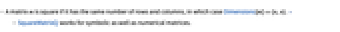 - A matrix m is square if it has the same number of rows and columns, in which case Dimensions[m]{n,n}. »