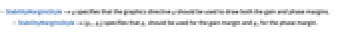 - StabilityMarginsStyle->g specifies that the graphics directive g should be used to draw both the gain and phase margins.
