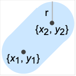 represents a stadium of radius r between the points {x1,y1} and {x2,y2}.