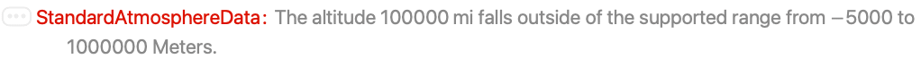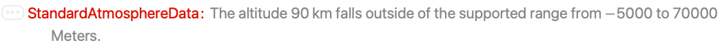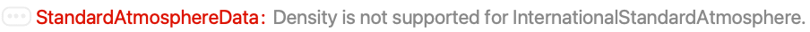 "InternationalStandardAtmosphere" 1964 International Standard Atmosphere model "Jacchia" 1977 Jacchia Atmosphere model for exospheric temperature at 1000 K "USStandardAtmosphere" 1976 United States Standard Atmosphere model - The default setting for Method is "USStandardAtmosphere".
