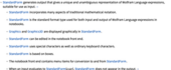 - StandardForm incorporates many aspects of traditional mathematical notation.