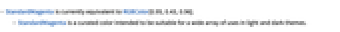 - StandardMagenta is a curated color intended to be suitable for a wide array of uses in light and dark themes.
