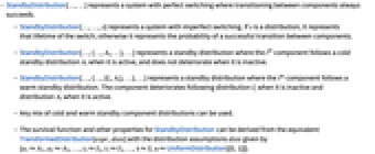 - StandbyDistribution[…,…] represents a system with perfect switching where transitioning between components always succeeds.