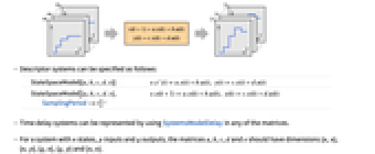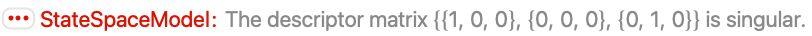 , and sampling period τ can be specified as StateSpaceModel[{a,b,c,d},SamplingPeriod->τ]. - Descriptor systems can be specified as follows: