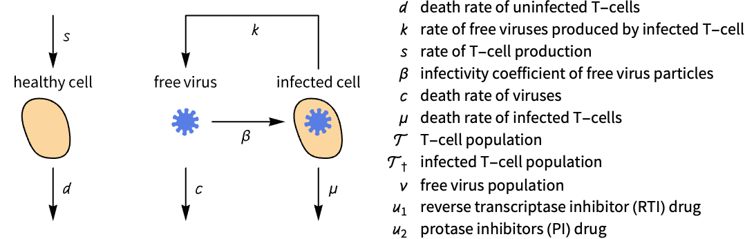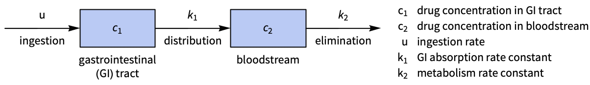 Construct a state-space model from a set of ordinary differential equations (ODEs):