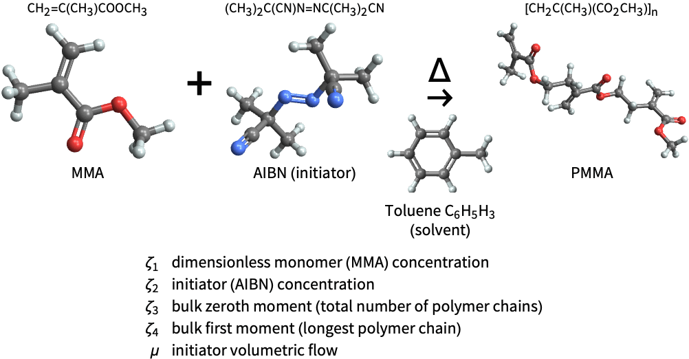 The MMA concentration decreases due to an increase in the initiator volumetric flow, indicating PMMA synthesis: