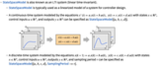 - StateSpaceModel is typically used as a linearized model of a system for controller design.