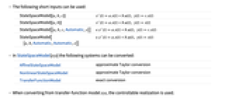 - In StateSpaceModel[sys] the following systems can be converted: