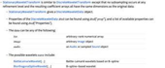 - StationaryWaveletTransform is similar to DiscreteWaveletTransform except that no subsampling occurs at any refinement level and the resulting coefficient arrays all have the same dimensions as the original data.