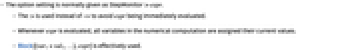 - Whenever expr is evaluated, all variables in the numerical computation are assigned their current values.