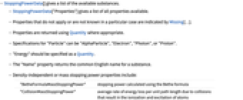 - StoppingPowerData["Properties"] gives a list of all properties available.