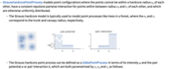 of each other, and which are otherwise uniformly distributed. - The Strauss hardcore model is typically used to model point processes like trees in a forest, where the