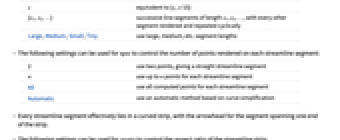 s equivalent to {s,s/15} {s1,s2,…} successive line segments of length s1, s2, …, with every other segment rendered and repeated cyclically Large,Medium,Small,Tiny use large, medium, etc. segment lengths - The following settings can be used for npts to control the number of points rendered on each streamline segment: