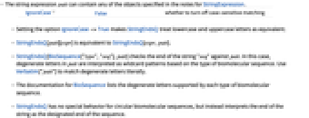 - The documentation for BioSequence lists the degenerate letters supported by each type of biomolecular sequence.
