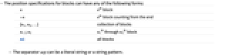 - The position specifications for blocks can have any of the following forms: