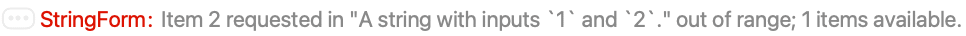 Wolfram Language. (1988). StringForm. Wolfram Language & System Documentation Center. Retrieved from https://reference.wolfram.com/language/ref/StringForm.html