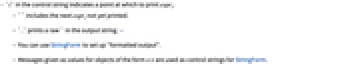 - Messages given as values for objects of the form s::t are used as control strings for StringForm.