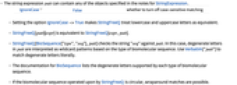 - If the biomolecular sequence operated upon by StringFreeQ is circular, wraparound matches are possible.