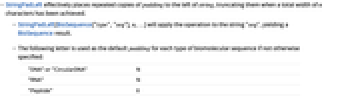 - StringPadLeft[BioSequence["type","seq"],n,…] will apply the operation to the string "seq", yielding a BioSequence result.