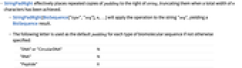 - StringPadRight[BioSequence["type","seq"],n,…] will apply the operation to the string "seq", yielding a BioSequence result.