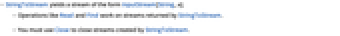 - You must use Close to close streams created by StringToStream.