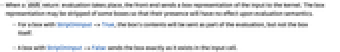 evaluation takes place, the front end sends a box representation of the input to the kernel. The box representation may be stripped of some boxes so that their presence will have no effect upon evaluation semantics. - For a box with StripOnInput->True, the box's contents will be sent as part of the evaluation, but not the box itself.